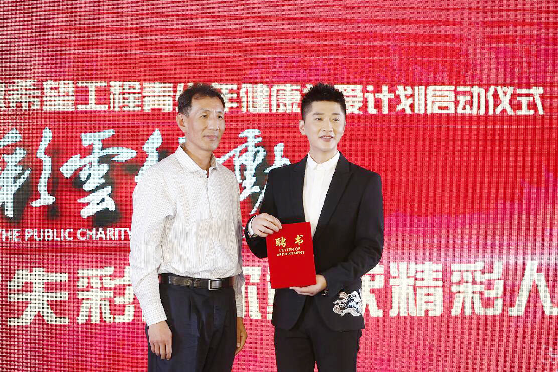 (彩云行动公益项目聘请安徽广播电视台著名主持人罗彬先生担任爱心大使,安徽省希望工程管理委员会办公室副主任、安徽省青少年发展基金会秘书长李永军颁发聘书)