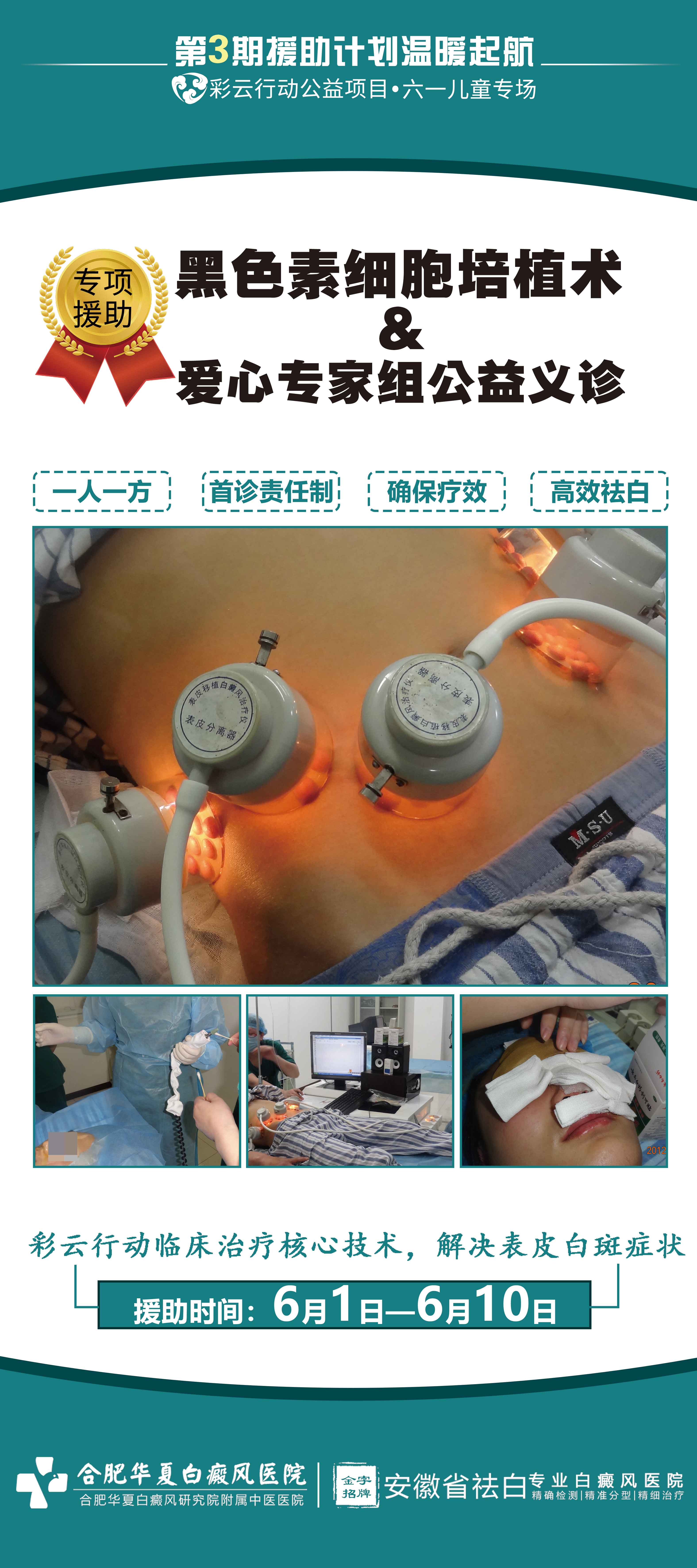 【措施】为了保障更多的白癜风患者得到更科学有效的精细化救治,合肥华夏白癜风医院特此开展“彩云行动公益项目·第3期援助计划”——彩云行动爱心医师组公益义诊+黑色素细胞培植术治疗援助,旨在实现医师资源的多方共享,为患者制定个体精细化治疗方案,得到更为科学有效的救助;同时,黑色素细胞培植治疗援助,更是在治疗上让患者得到实实在在的优惠,看得起病,让他们得到有效治疗,收获健康肤色,重获自信。