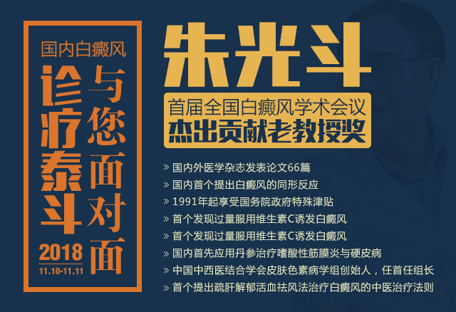 为了将2018首届全国白癜风学术会议部署落到实处,践行2018白癜风最新诊疗共识,执行白癜风精准医学临床诊疗路径,解决白癜风患者久治不愈的难题,我院特邀合肥华夏白癜风医院学术总顾问、上海市第一人民医院皮肤科主任、首届全国白癜风学术会议“杰出贡献老教授奖”获得者、中国中西医结合学会皮肤色素病学组创始人、国务院特殊津贴医师朱光斗教授莅临华夏,分享中医药在白癜风临床诊疗方面的科研成果以及中西医联合诊疗理念的同时,为患者明确诊断病因,制定个体化诊疗方案,以最有效、最安全、最经济的方式实现白癜风患者健康最大化!
