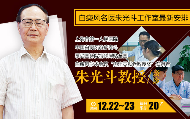 基于此,我院充分考虑白癜风疾病治疗周期,于12月22日-12月23日,由全国白癜风学术会议“杰出贡献老教授奖”获得者、上海市第一人民医院皮肤科主任、中国白癜风诊疗泰斗朱光斗教授来院进行学术交流,分享中西医联合诊疗最新理念,共同探讨中西医治疗白癜风理论与临床发展,为患者明确诊断病因,制定个体化诊疗方案,以最有效、最安全、最经济的方式实现白癜风临床治疗有效率与治愈率的最大化!